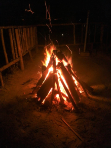 কিছুক্ষণ পর রবি জ্বালানি কাঠ দিয়ে “বন ফায়ারের” ব্যবস্থা করে দিলেন। আকাশে পূর্ণিমার আলোয় প্রজ্জ্বলিত কাঞ্চনজঙ্ঘা, আর আমরা সবাই গোল করে কনকনে ঠান্ডায় আগুন পোহাচ্ছি। শ্যালিকার কণ্ঠে রবীন্দ্রসঙ্গীত– ‘চাঁদের হাসির বাঁধ ভেঙেছে…’। এ রোমান্টিক অভিজ্ঞতা ভোলার নয়। চারিদিকে অজানা জংলি পোকার ডাক আর দূর বন থেকে নিশাচর পাখির ডাক। তাপমাত্রার পারদ হু হু করে নামছে। বিমল তামাংয়ের গৃহিণী কাঠের উনুনে রুটি করছেন অদ্ভুত দক্ষতায়। ডিনারে পাহাড়ি ছাগলের কষা মাংস আর গরম গরম রুটি, সাথে পেঁয়াজ। ওহ! মজাই আলাদা!