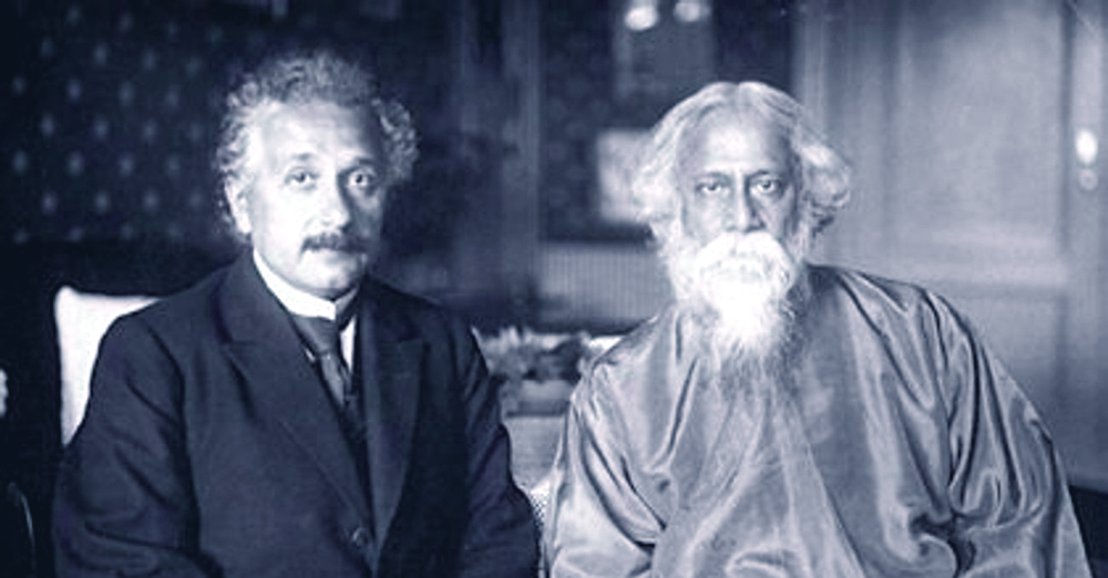১৯৩০ সালের ১৪ জুলাই, আলবার্ট আইনস্টাইন (১৪ মার্চ ১৮৭৯—১৮ এপ্রিল ১৯৫৫) বার্লিনের উপকণ্ঠে নিজের বাড়িতে স্বাগত জানান ভারতীয় কবি, দার্শনিক ও সঙ্গীতজ্ঞ রবীন্দ্রনাথ ঠাকুরকে (৭ মে ১৮৬১—৭ আগস্ট ১৯৪১)। তিনি ছিলেন প্রথম অ-ইউরোপীয় নোবেল বিজয়ী। তাঁদের এই সাক্ষাৎকারটি ইতিহাসের অন্যতম বুদ্ধিদীপ্ত ও মননশীল আলাপচারিতায় পরিণত হয়, যেখানে তাঁরা বিজ্ঞান ও ধর্মের চিরন্তন দ্বন্দ্ব নিয়ে আলোচনা করেন। “সায়েন্স অ্যান্ড দ্য ইন্ডিয়ান ট্রাডিশন: হোয়েন আইনস্টাইন মেট টেগোর” গ্রন্থে এই ঐতিহাসিক সাক্ষাতের বিবরণ পাওয়া যায়। এই বইতে বিশ শতকের শুরুতে ভারতের বৌদ্ধিক পুনর্জাগরণ এবং ভারতীয় ঐতিহ্য ও পাশ্চাত্য বৈজ্ঞানিক চিন্তার মেলবন্ধন তুলে ধরা হয়েছে।